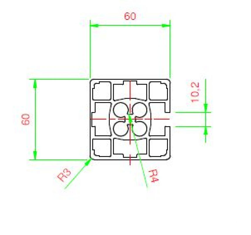 DESCRIZIONE: Profilo in alluminio anodizzato 60x60mm - 1 cava aperta - 3 cave chiuse rimovibili - peso 3,31 kg/mt. Foro predisposto per filetto M10. Finitura: anodizzato argento.