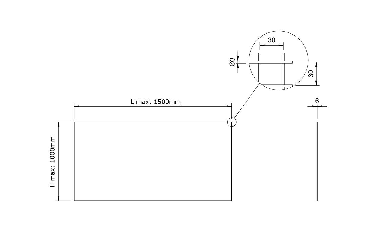 DESCRIZIONE: Rete in ferro zincato. Diametro filo: 3mm. Maglia: 30x30mm. Altezza massima: 1000mm.